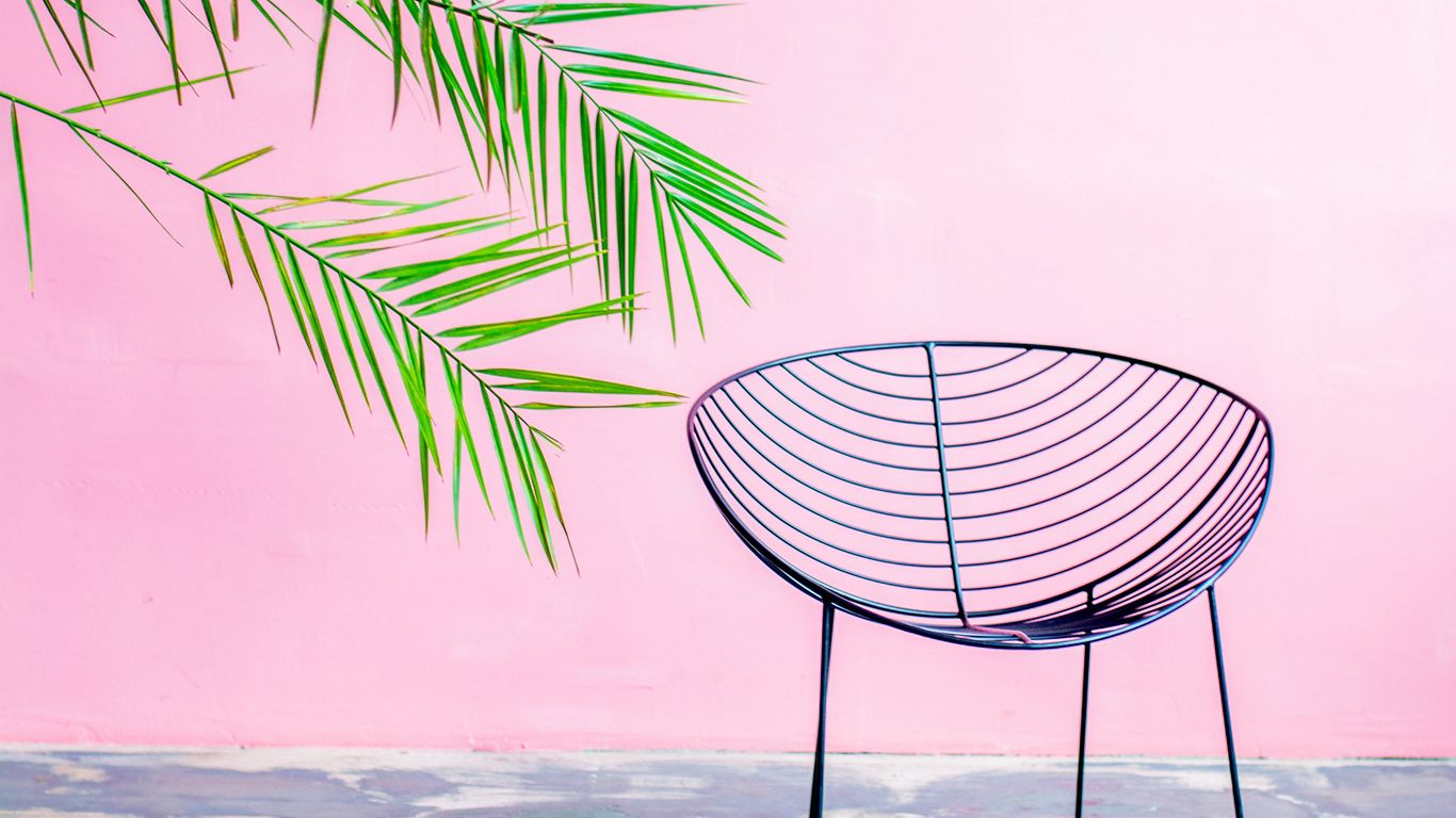 1366x768 листья, стул, стена, текстура обои планшет, ноутбук