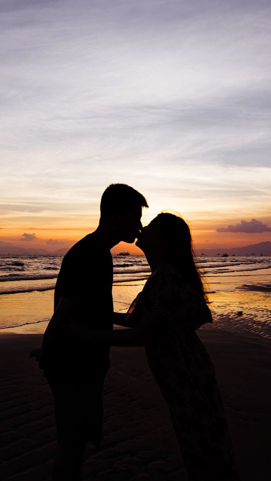 540x960 любовь, силуэт, поцелуй, закат обои samsung galaxy s4 mini, microsoft lumia 535, philips xenium, lg l90, htc sensation