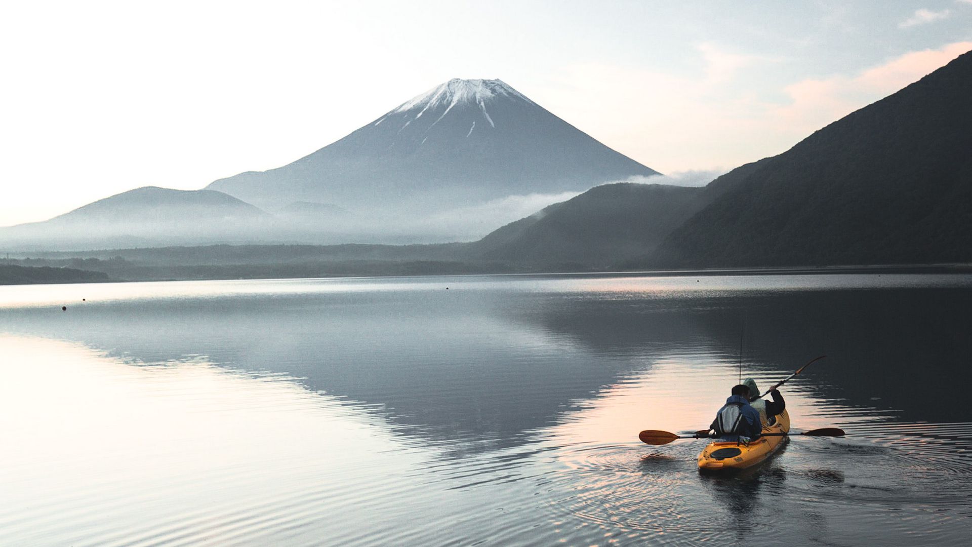 1920x1080 лодка, каноэ, вулкан, море, рябь обои full hd, hdtv, fhd, 1080p