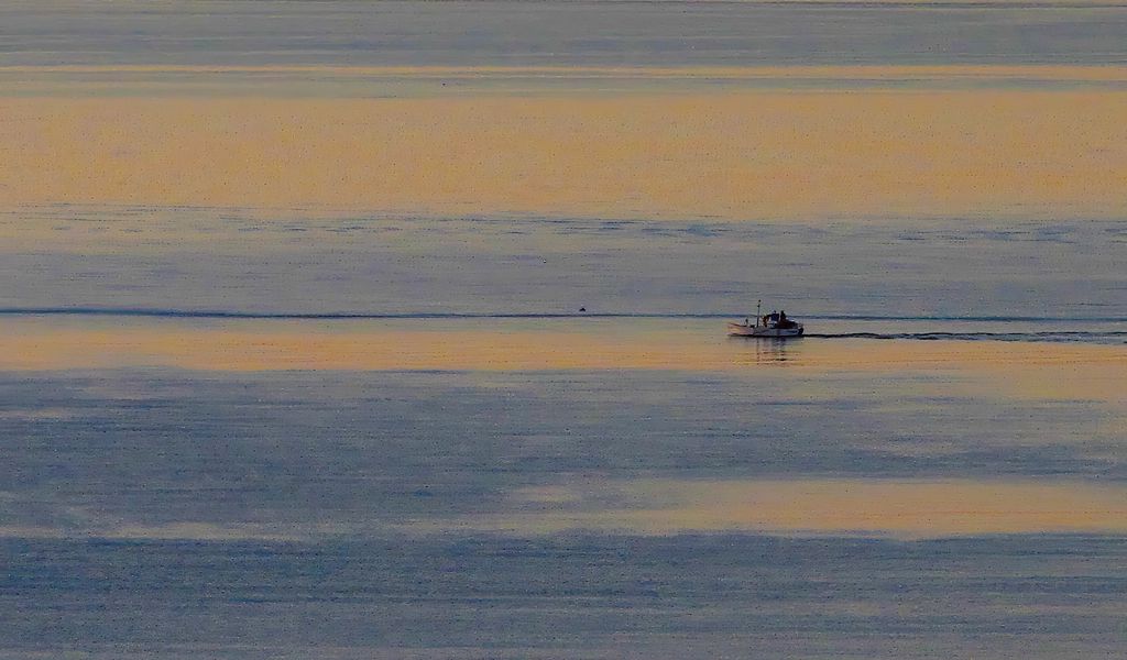 1024x600 лодка, море, горизонт, вечер, небо обои нетбук, планшет