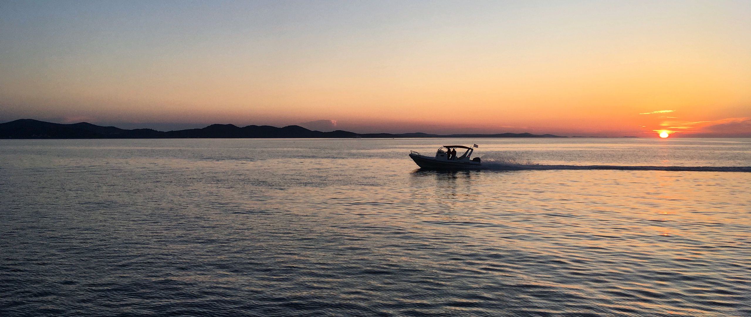 2560x1080 лодка, море, горизонт, вечер обои два монитора 1080p
