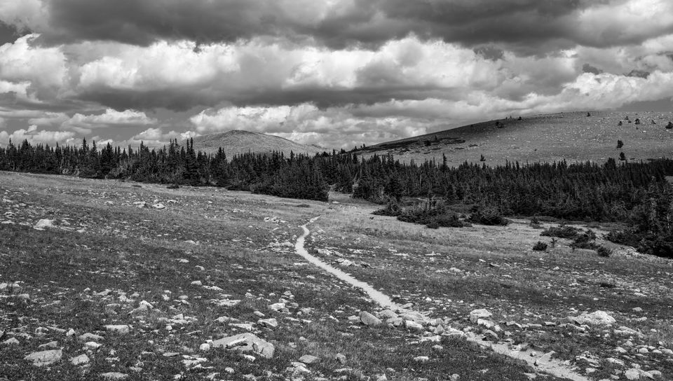 960x544 луг, деревья, тропа, чб, природа обои playstation ps vita