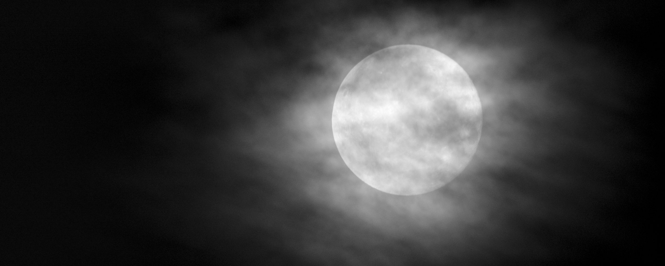 2560x1024 луна, облака, ночь, небо, туман, чб обои ультраширокий монитор