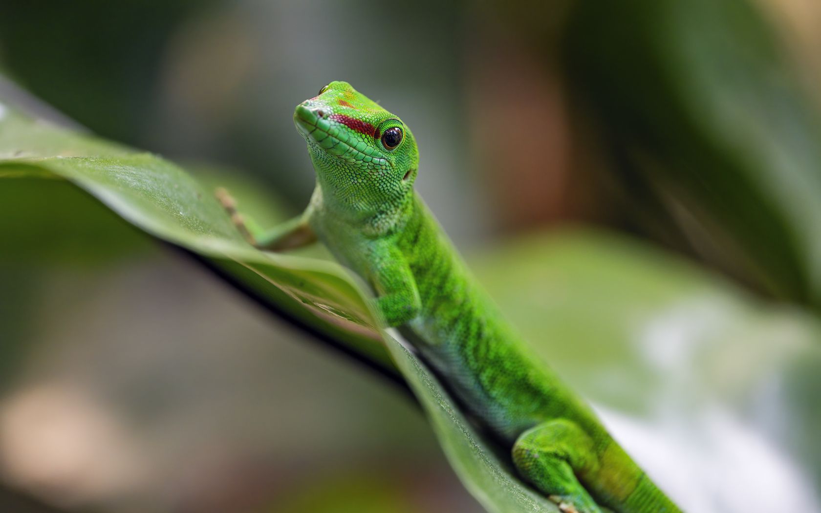 1680x1050 мадагаскарский дневной геккон, геккон, животное, ящерица, лист, природа, макро обои 16:10