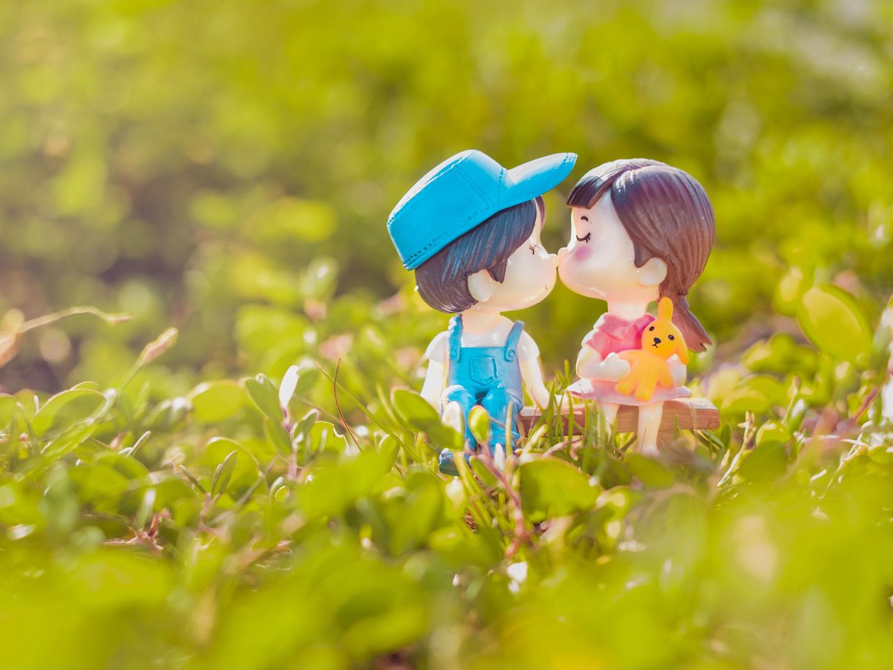 1280x960 мальчик, девочка, поцелуй, любовь, фигурки обои стандарт 4:3