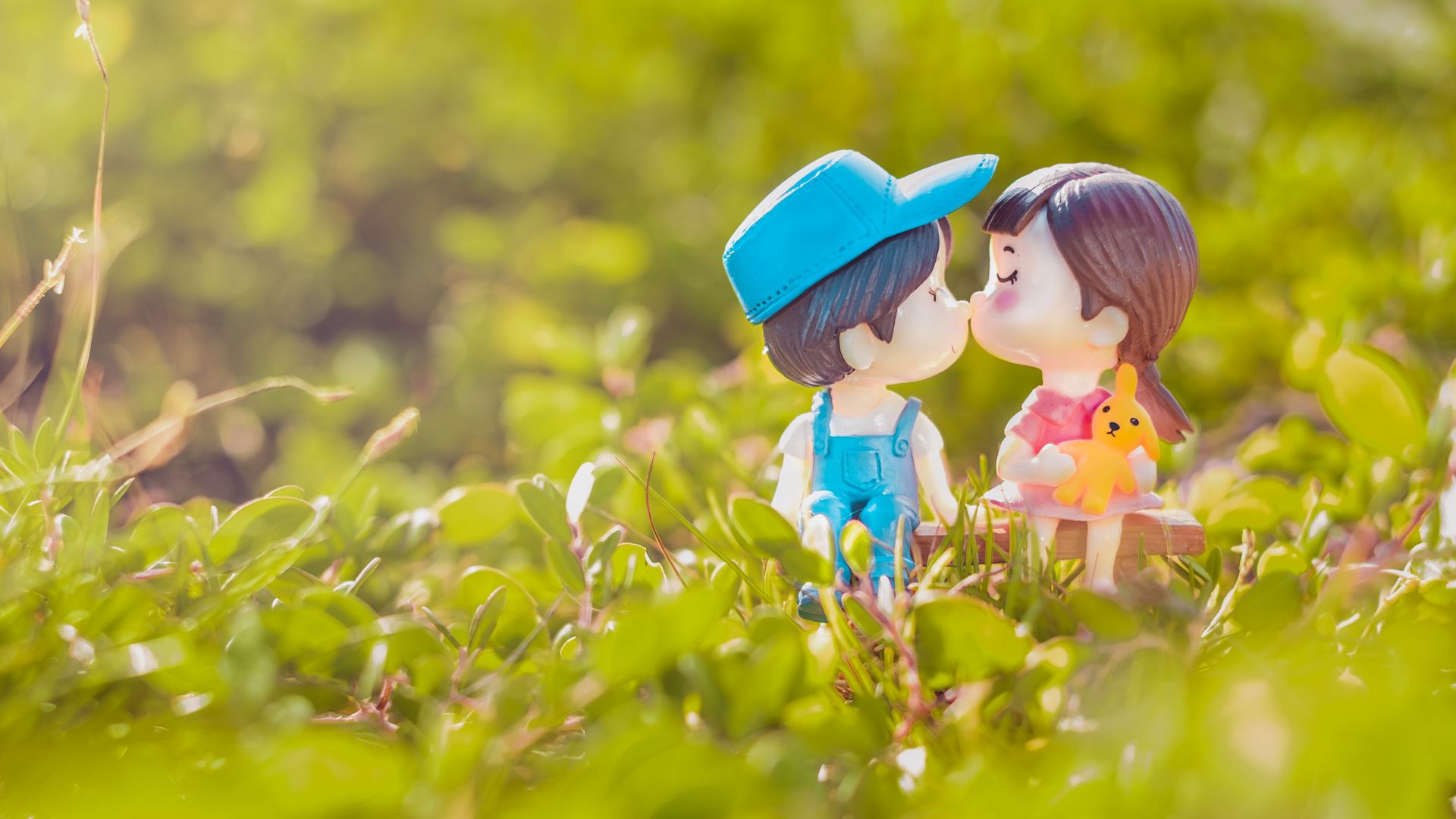 1920x1080 мальчик, девочка, поцелуй, любовь, фигурки обои full hd, hdtv, fhd, 1080p