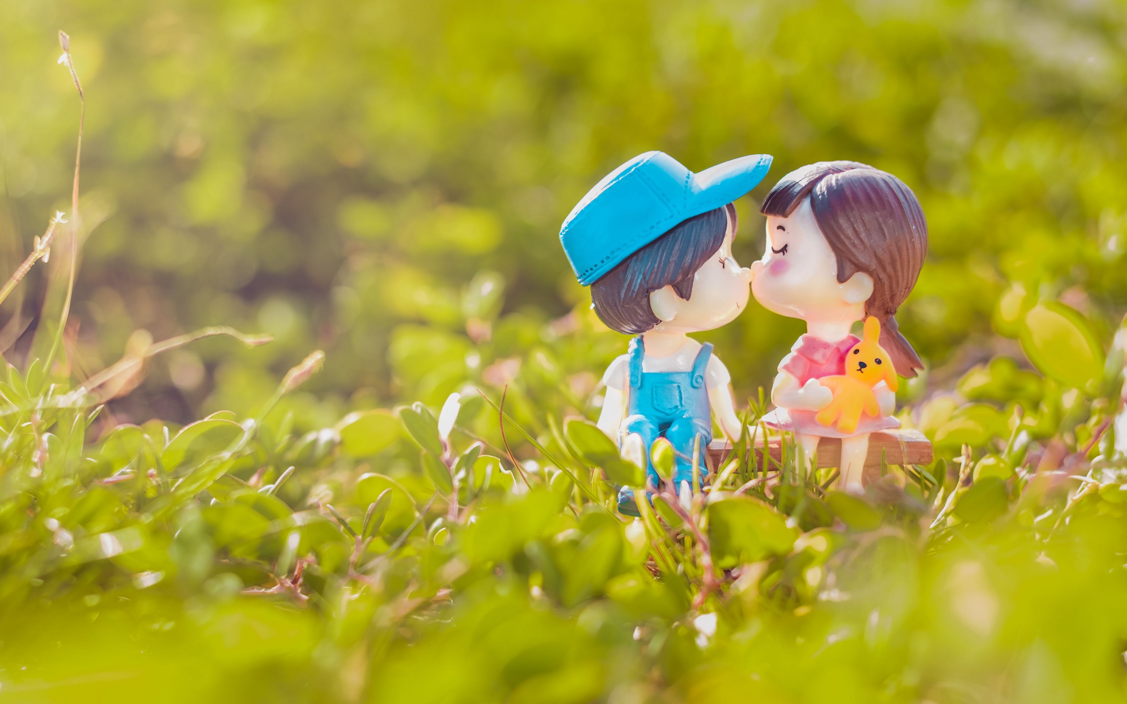 3840x2400 мальчик, девочка, поцелуй, любовь, фигурки обои 4k ultra hd 16:10