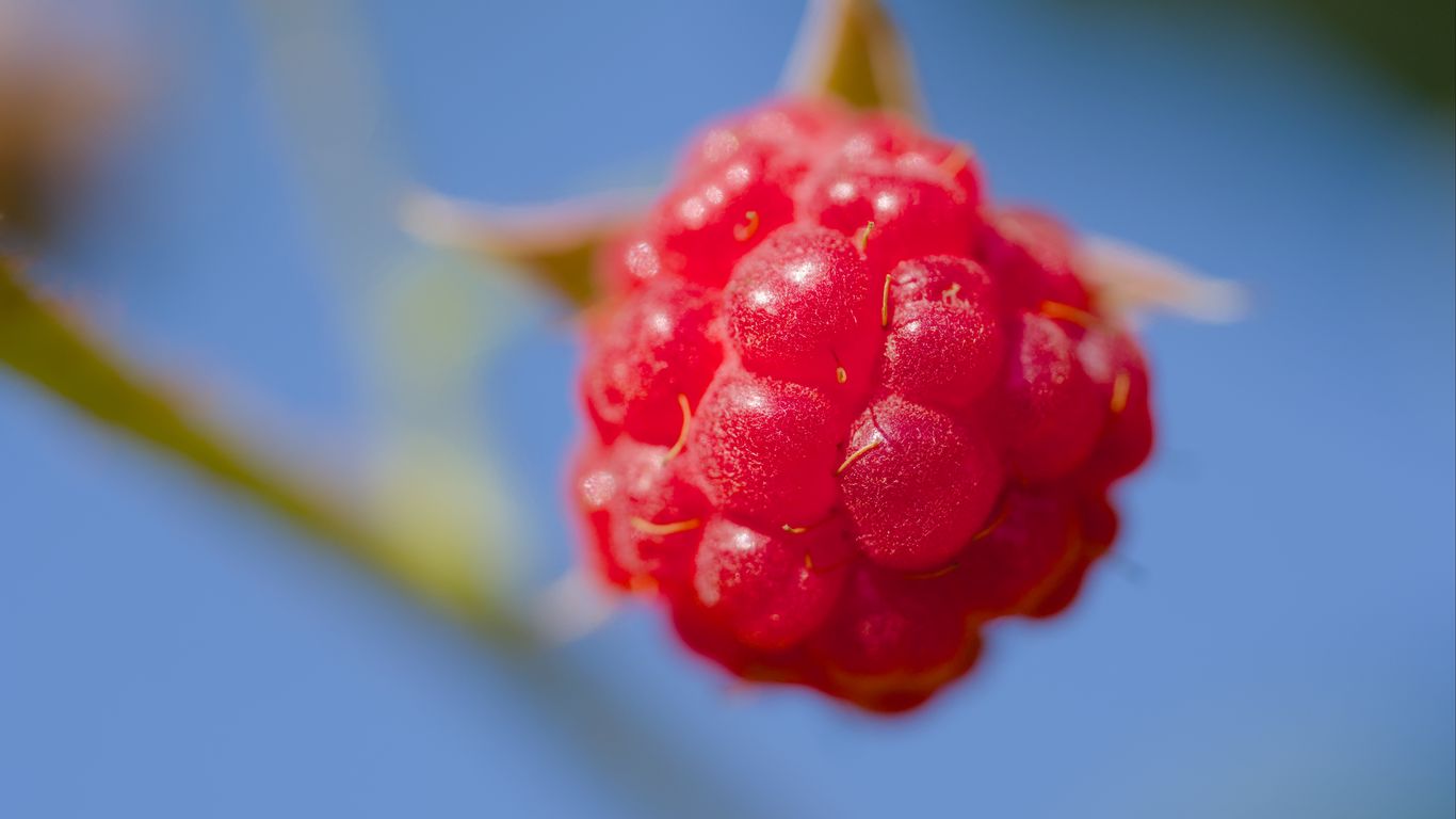 1366x768 малина, ягода, красный, синий, макро обои планшет, ноутбук
