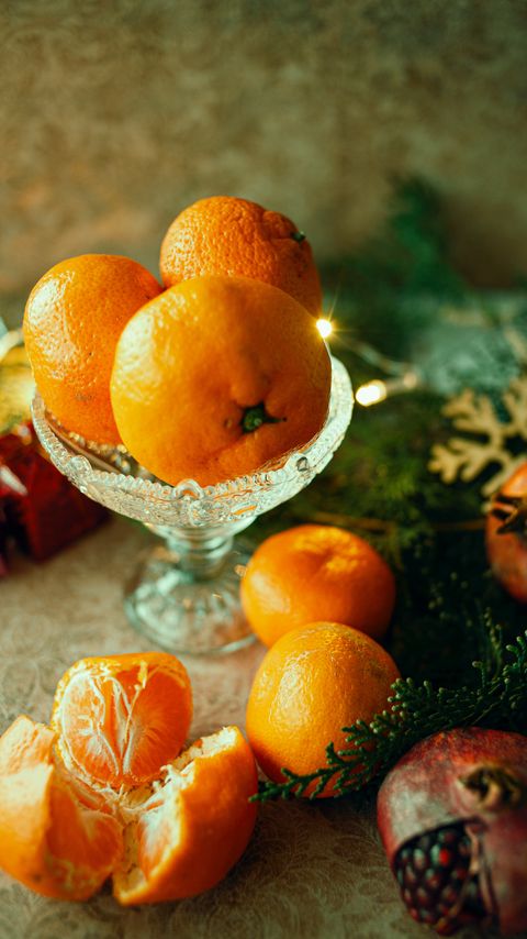 480x854 мандарины, гранат, фрукты, ветка, туя обои nokia lumia 630, sony ericsson xperia