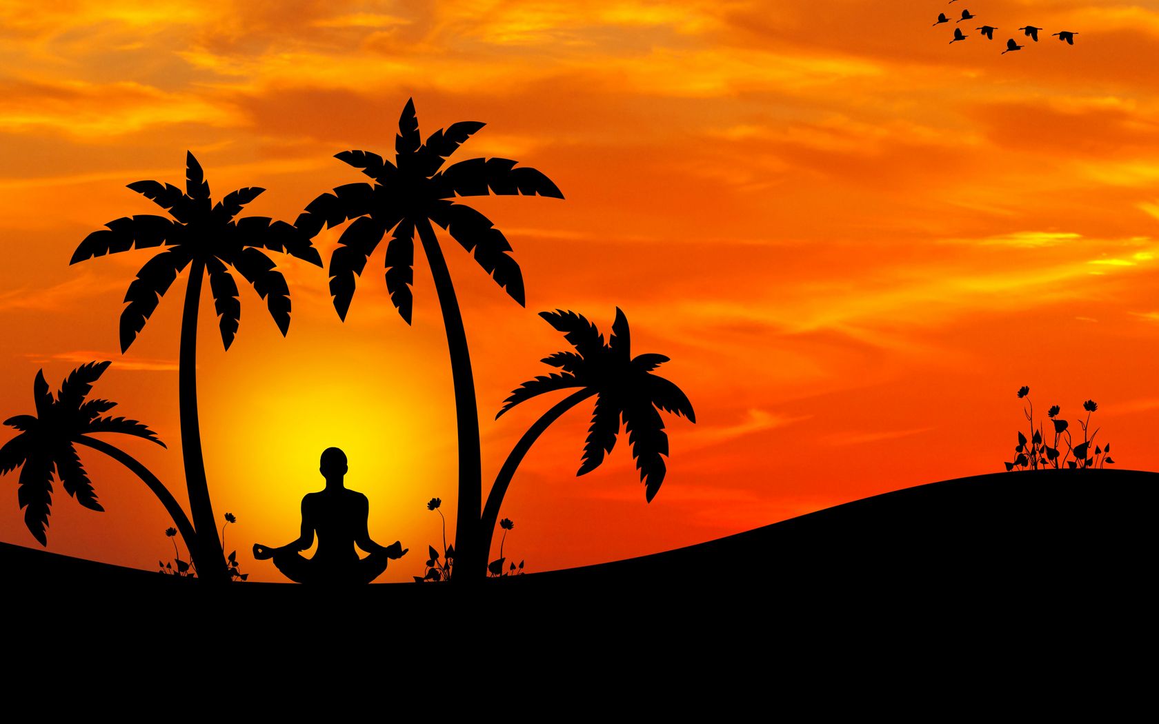 1680x1050 медитация, йога, силуэт, пальмы, гармония обои 16:10