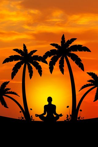 320x480 медитация, йога, силуэт, пальмы, гармония обои samsung galaxy ace gt-s5830, sony xperia e, miro, htc wildfire s, c, lg optimus