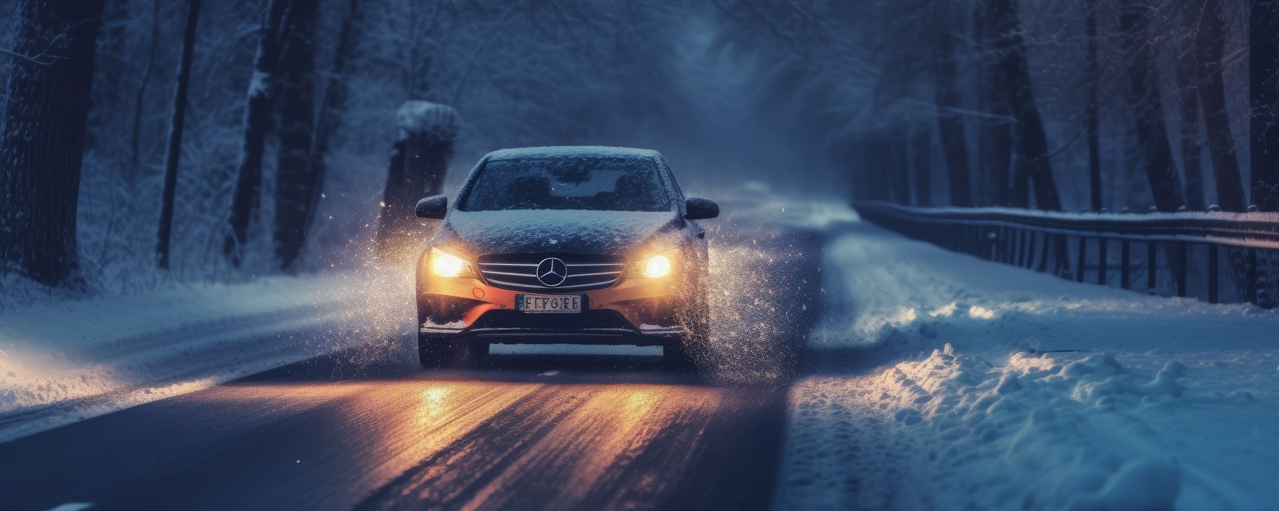 2560x1024 mercedes, автомобиль, машина, дорога, зима, снег обои ультраширокий монитор