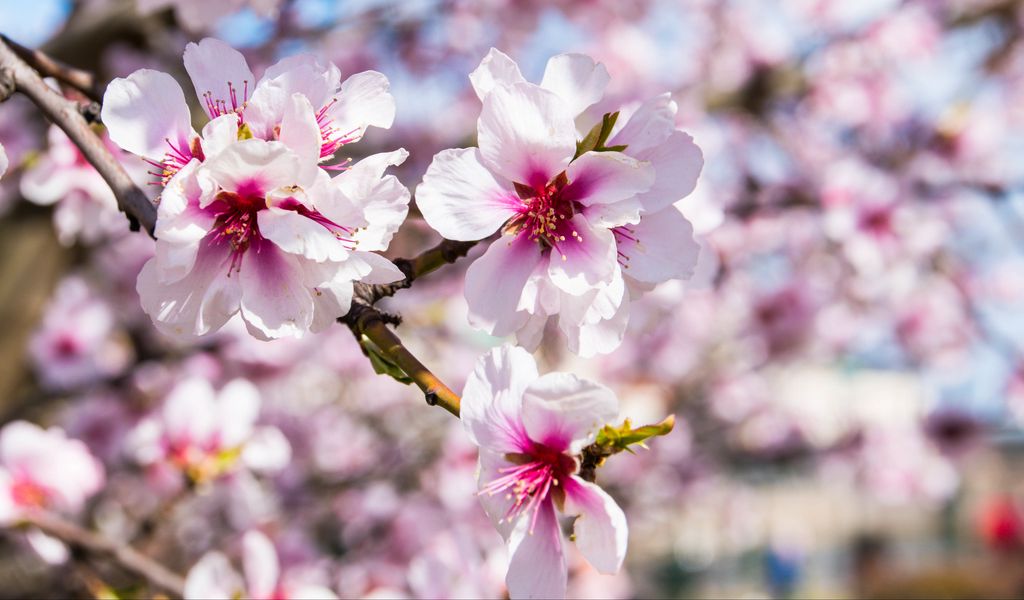 1024x600 миндаль, цветы, лепестки, ветка обои нетбук, планшет