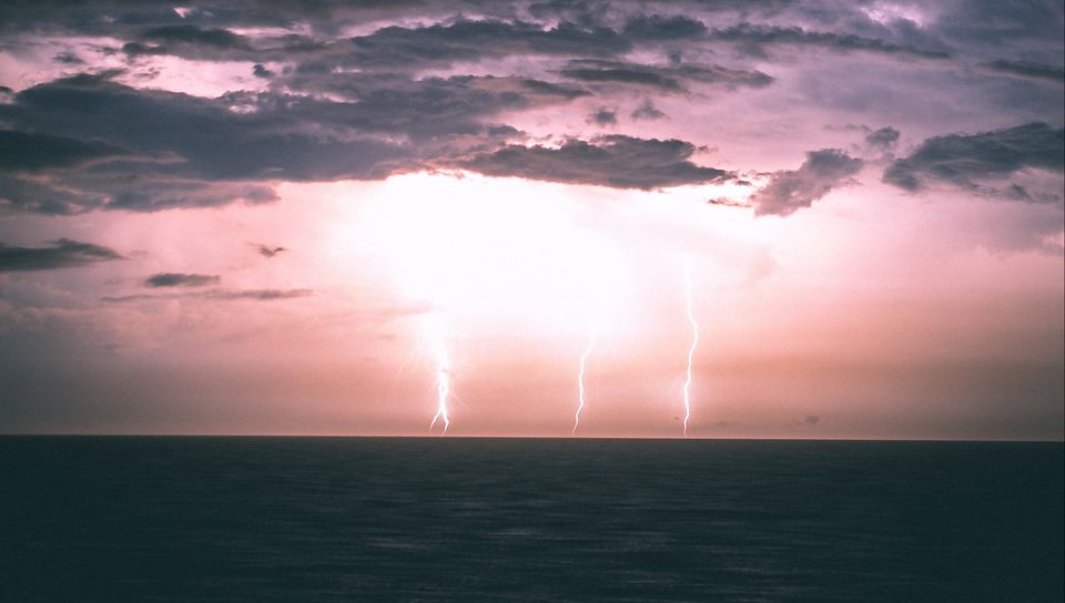 960x544 молнии, горизонт, море, ночь, облака, пасмурно обои playstation ps vita