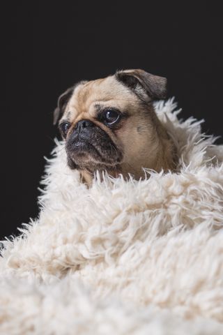 320x480 мопс, питомец, собака, грусть, милый, плед обои samsung galaxy ace gt-s5830, sony xperia e, miro, htc wildfire s, c, lg optimus