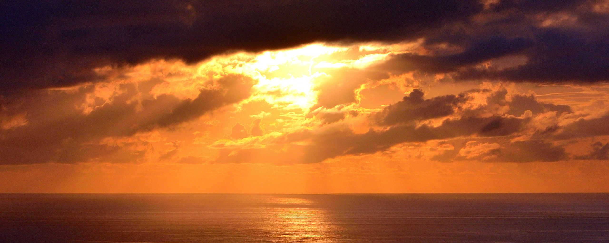 2560x1024 море, горизонт, облака, закат, темный обои ультраширокий монитор