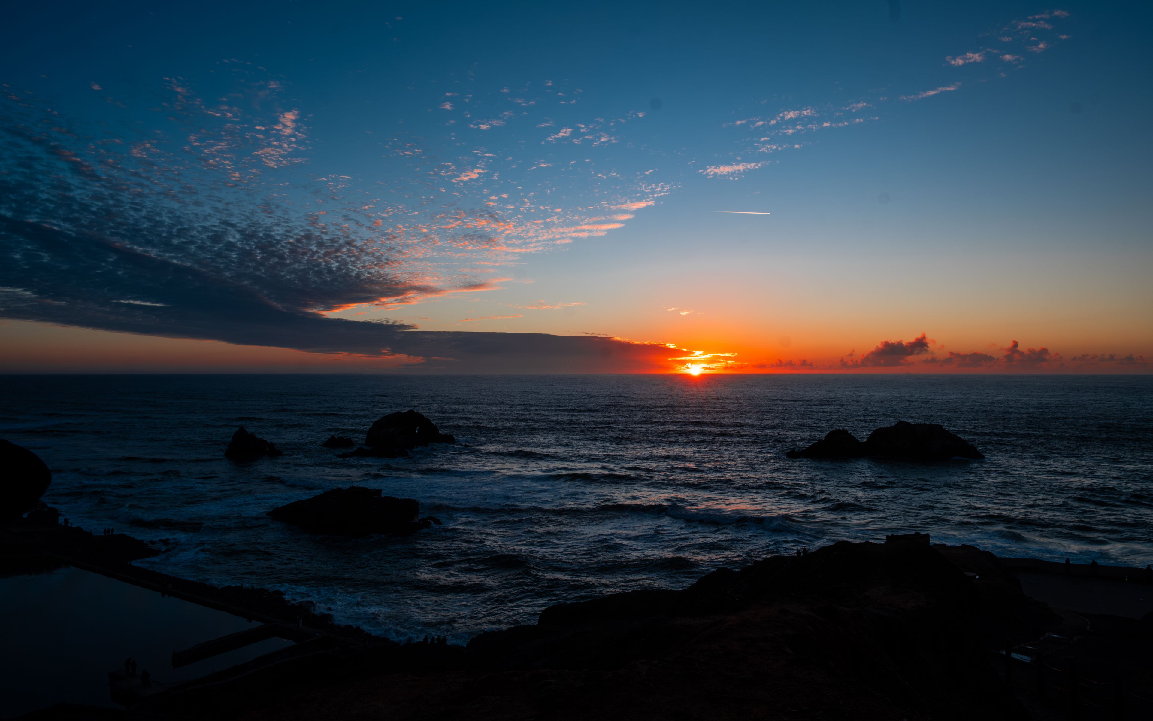 3840x2400 море, горизонт, солнце, закат, облака, пейзаж, темный обои 4k ultra hd 16:10