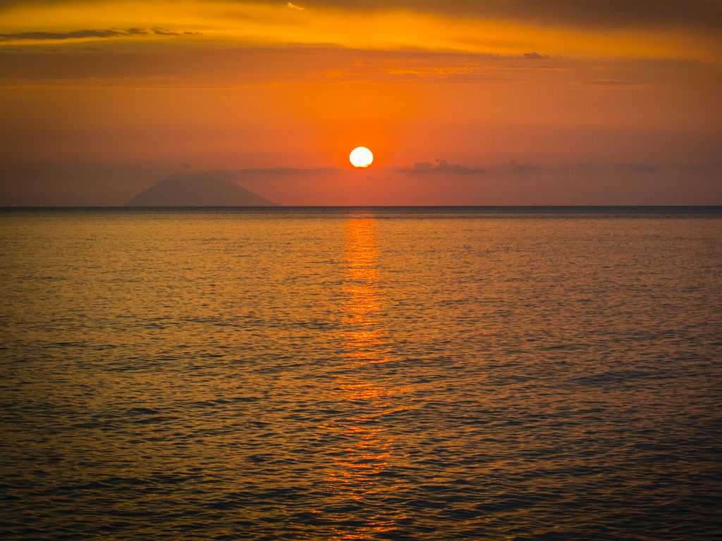 1024x768 море, горизонт, солнце, темный, закат обои стандарт 4:3