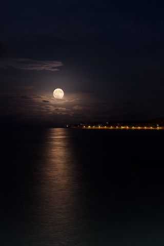 320x480 море, луна, ночь, огни обои samsung galaxy ace gt-s5830, sony xperia e, miro, htc wildfire s, c, lg optimus
