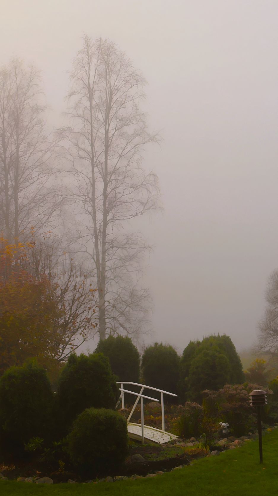 938x1668 мост, деревья, туман, осень обои iphone 8/7/6s/6 for parallax