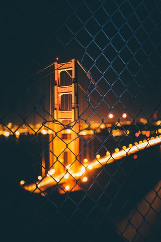 320x480 мост, ночь, забор, сетка, размытость, боке, блики обои samsung galaxy ace gt-s5830, sony xperia e, miro, htc wildfire s, c, lg optimus