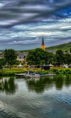 240x400 мост, река, теплоходы, здания, деревья, облака, пейзаж обои nokia asha 311, samsung galaxy 580, omnia, lg kp500