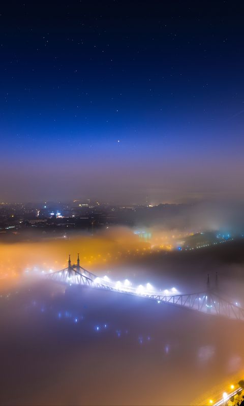 480x800 мост, туман, ночной город, вид сверху, будапешт, венгрия обои nokia x, x2, xl, 520, 620, 820, samsung galaxy star, ace, asus zenfone 4
