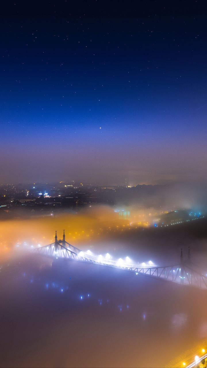 720x1280 мост, туман, ночной город, вид сверху, будапешт, венгрия обои samsung galaxy mini s3, s5, neo, alpha, sony xperia compact z1, z2, z3, asus zenfone