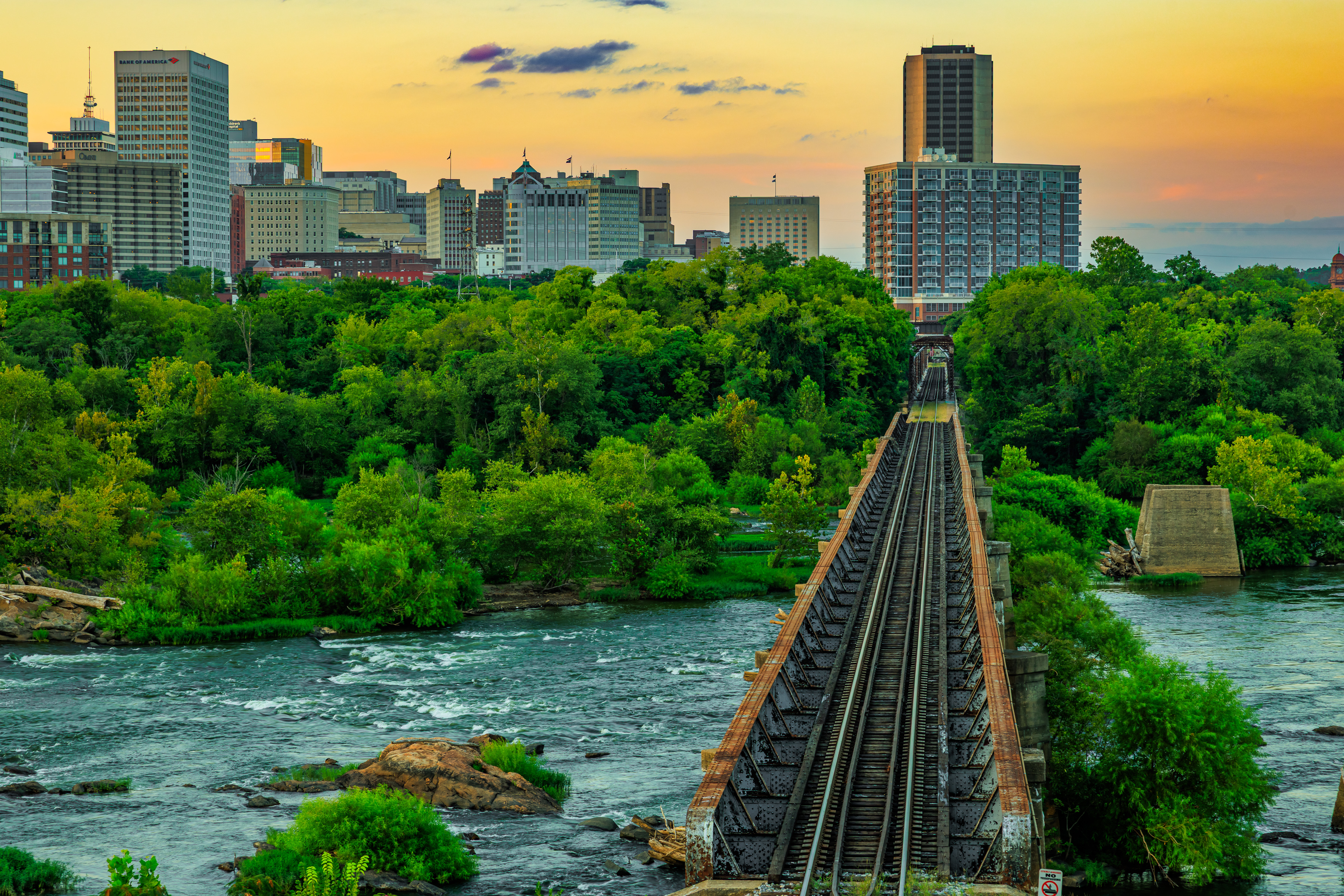 3600x2401 мост, железная дорога, река, город, закат, пейзаж обои