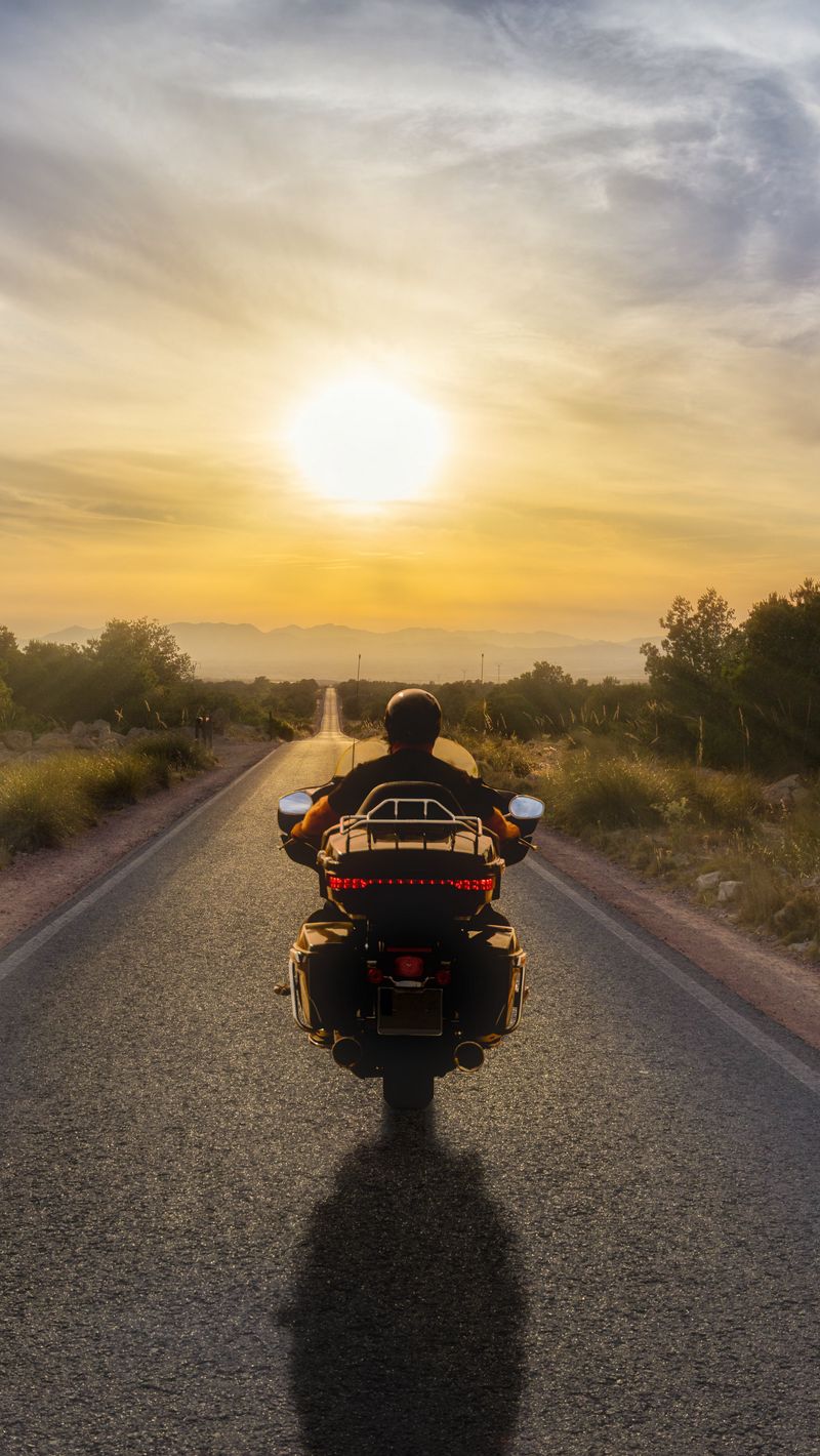 800x1420 мотоцикл, байк, байкер, мотоциклист, дорога, закат обои iphone se/5s/5c/5 for parallax
