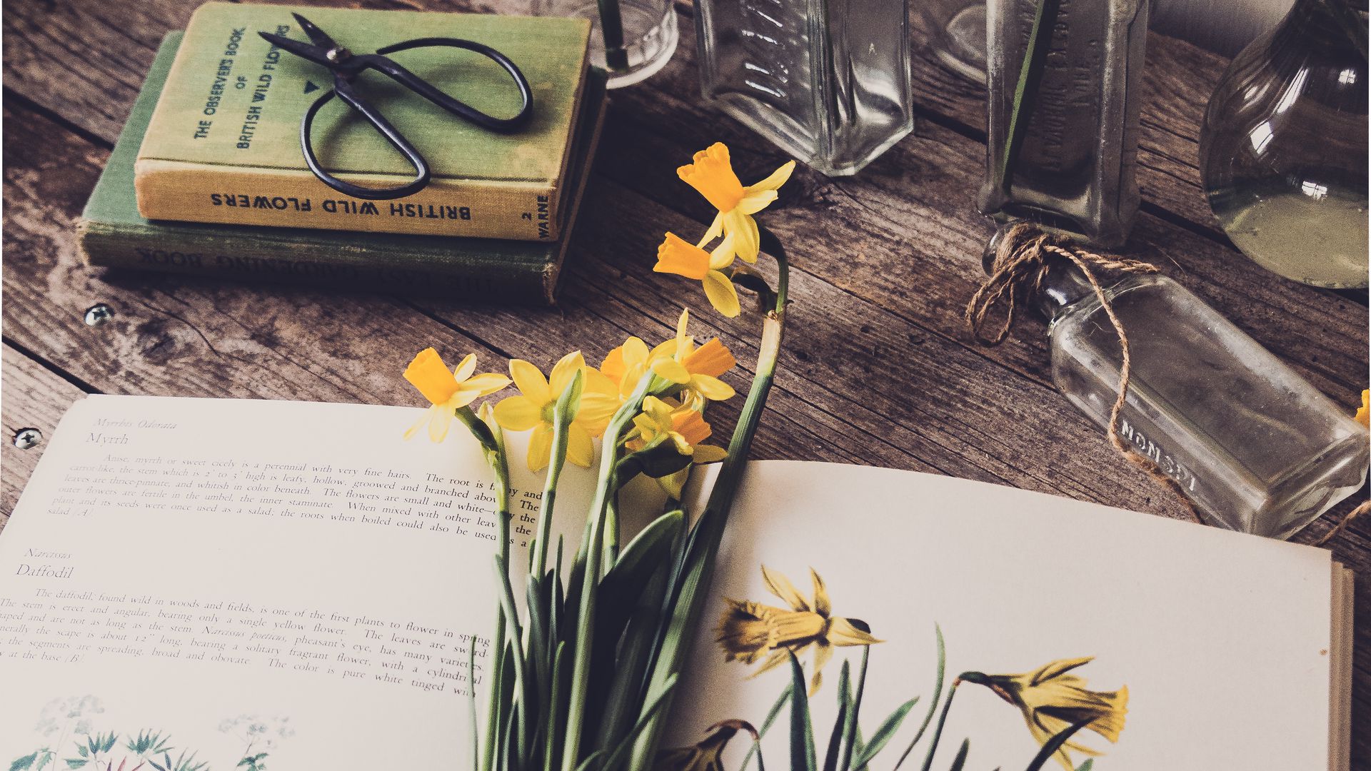 1920x1080 нарциссы, цветы, книга, ботаника обои full hd, hdtv, fhd, 1080p