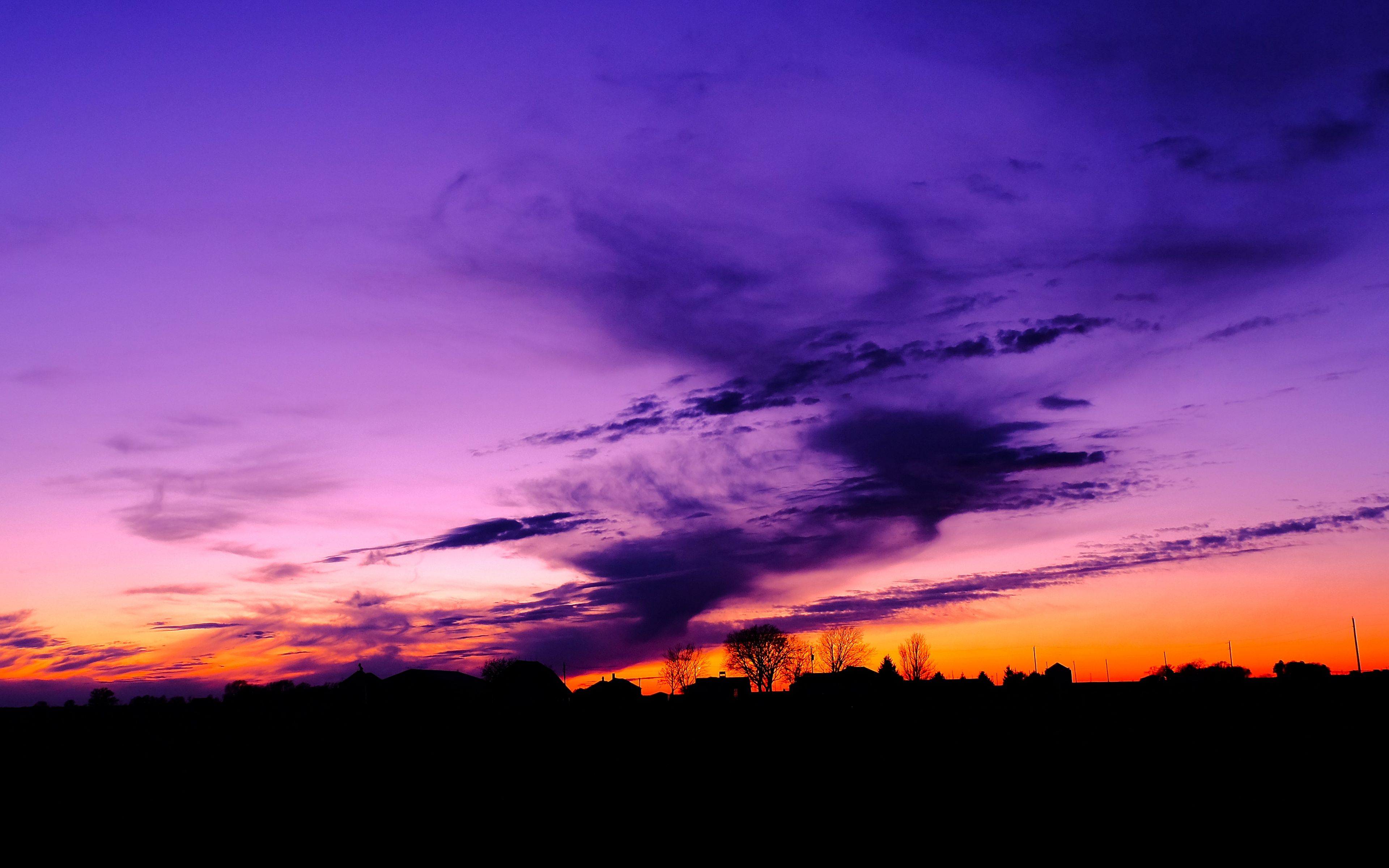 3840x2400 небо, облака, горизонт, дома, синий, розовый, оранжевый обои 4k ultra hd 16:10