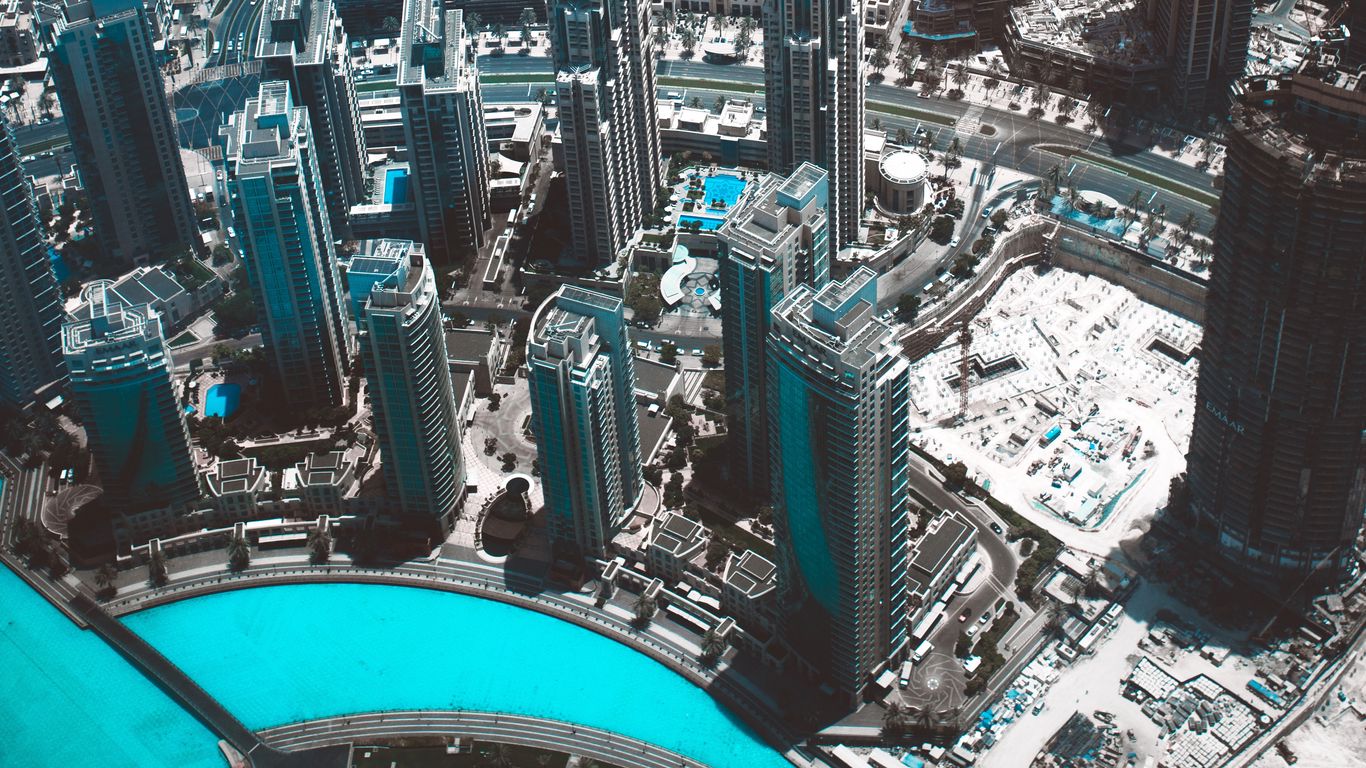 1366x768 небоскребы, вид сверху, бурдж халифа, дубай, объединенные арабские эмираты обои планшет, ноутбук
