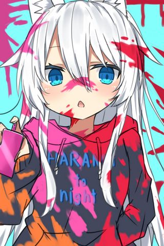 320x480 неко, девушка, краска, пятна, аниме обои samsung galaxy ace gt-s5830, sony xperia e, miro, htc wildfire s, c, lg optimus