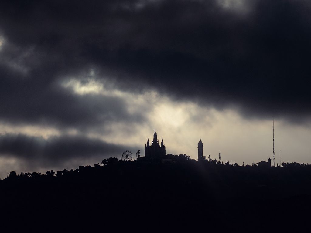 1024x768 ночь, облака, пасмурно, здания, дом-музей гауди, барселона обои стандарт 4:3