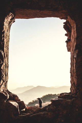 320x480 окно, птица, горы, свет, природа обои samsung galaxy ace gt-s5830, sony xperia e, miro, htc wildfire s, c, lg optimus