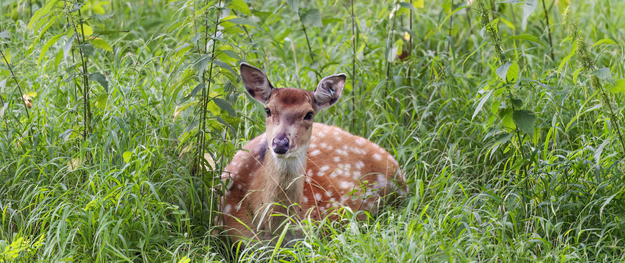2560x1080 олень, трава, лес, животное, дикая природа обои два монитора 1080p