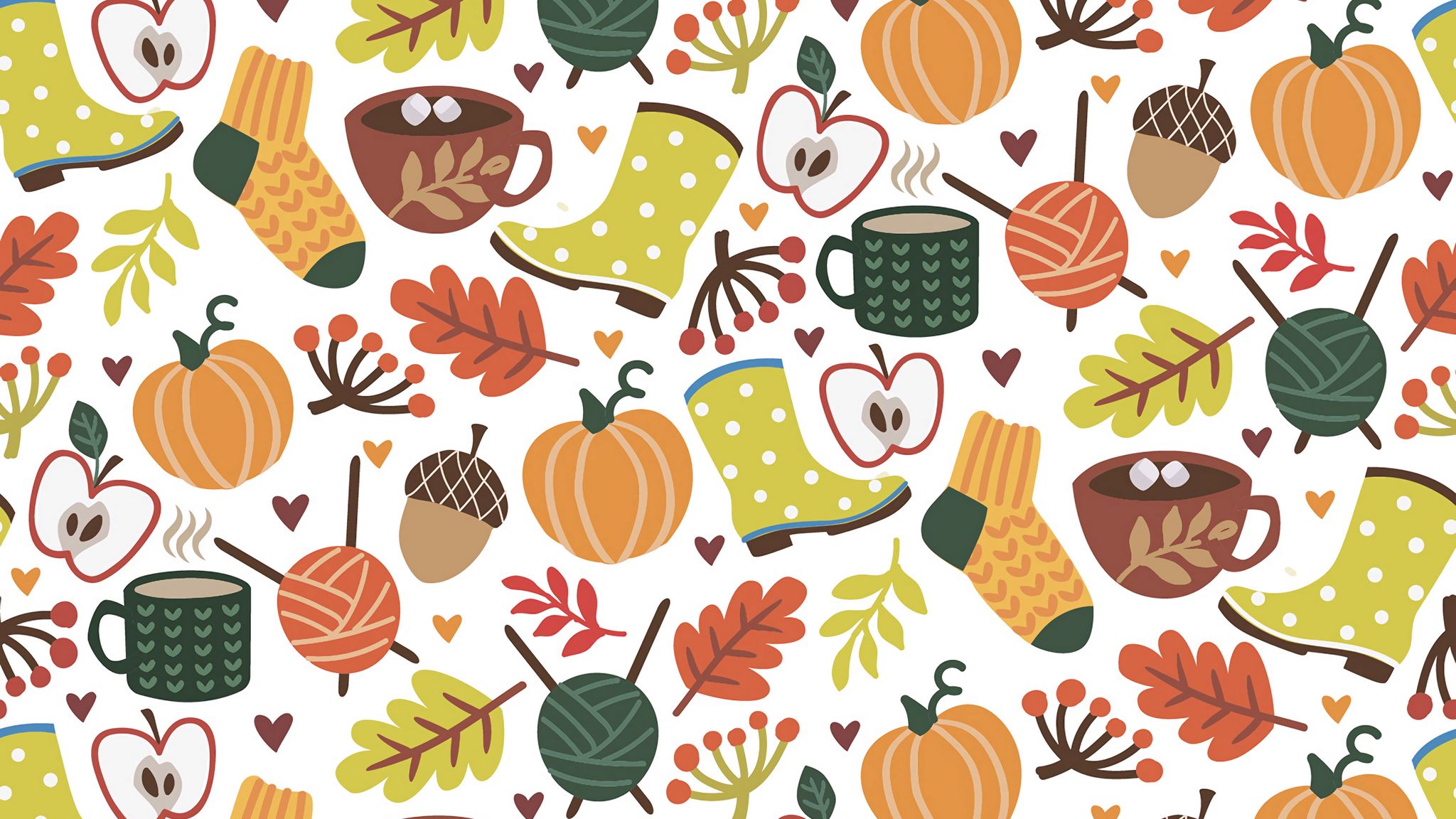 2048x1152 осень, паттерн, уют, носки, какао, листья обои ультраширокий монитор