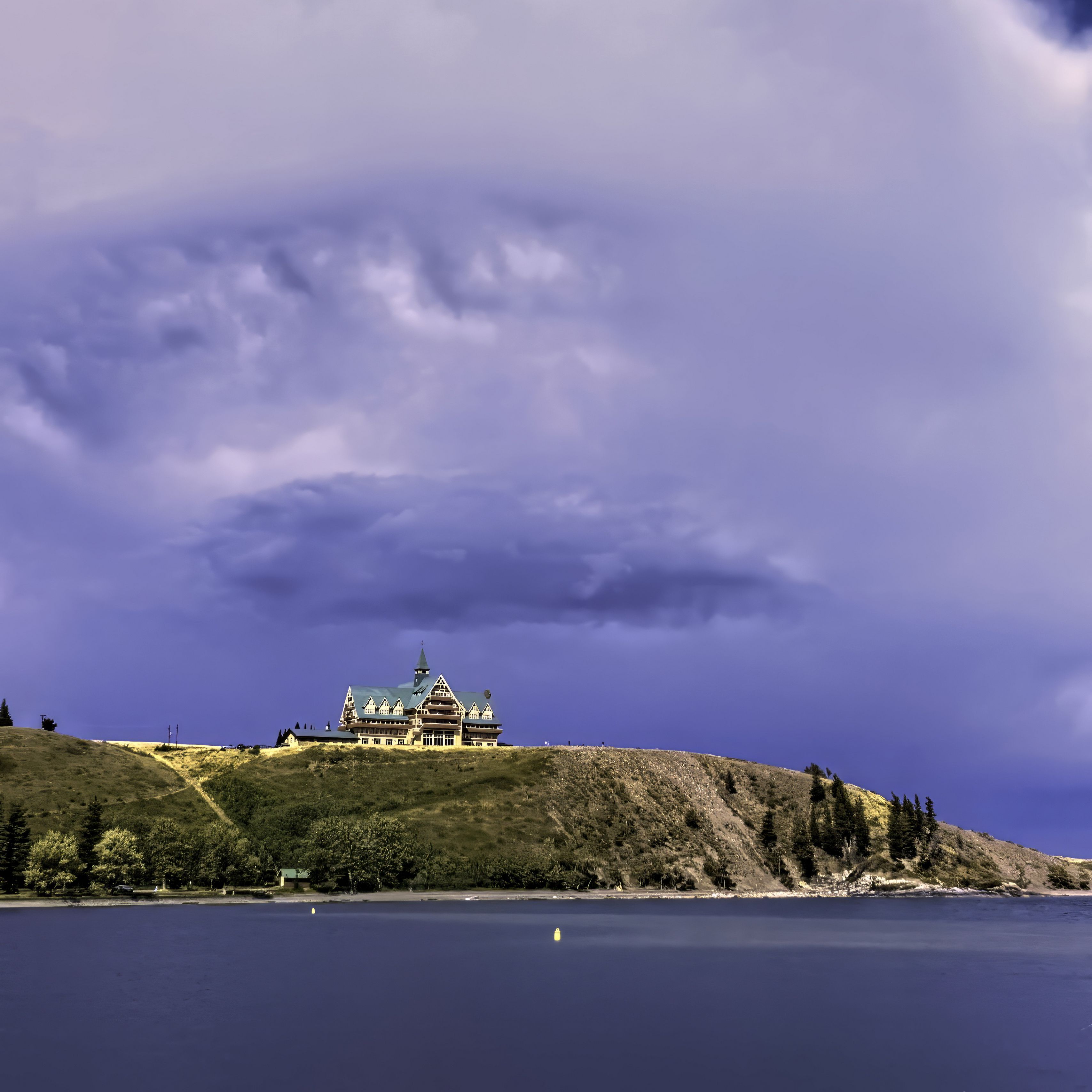 3415x3415 остров, здание, холм, море, пейзаж обои ipad pro 12.9" retina for parallax