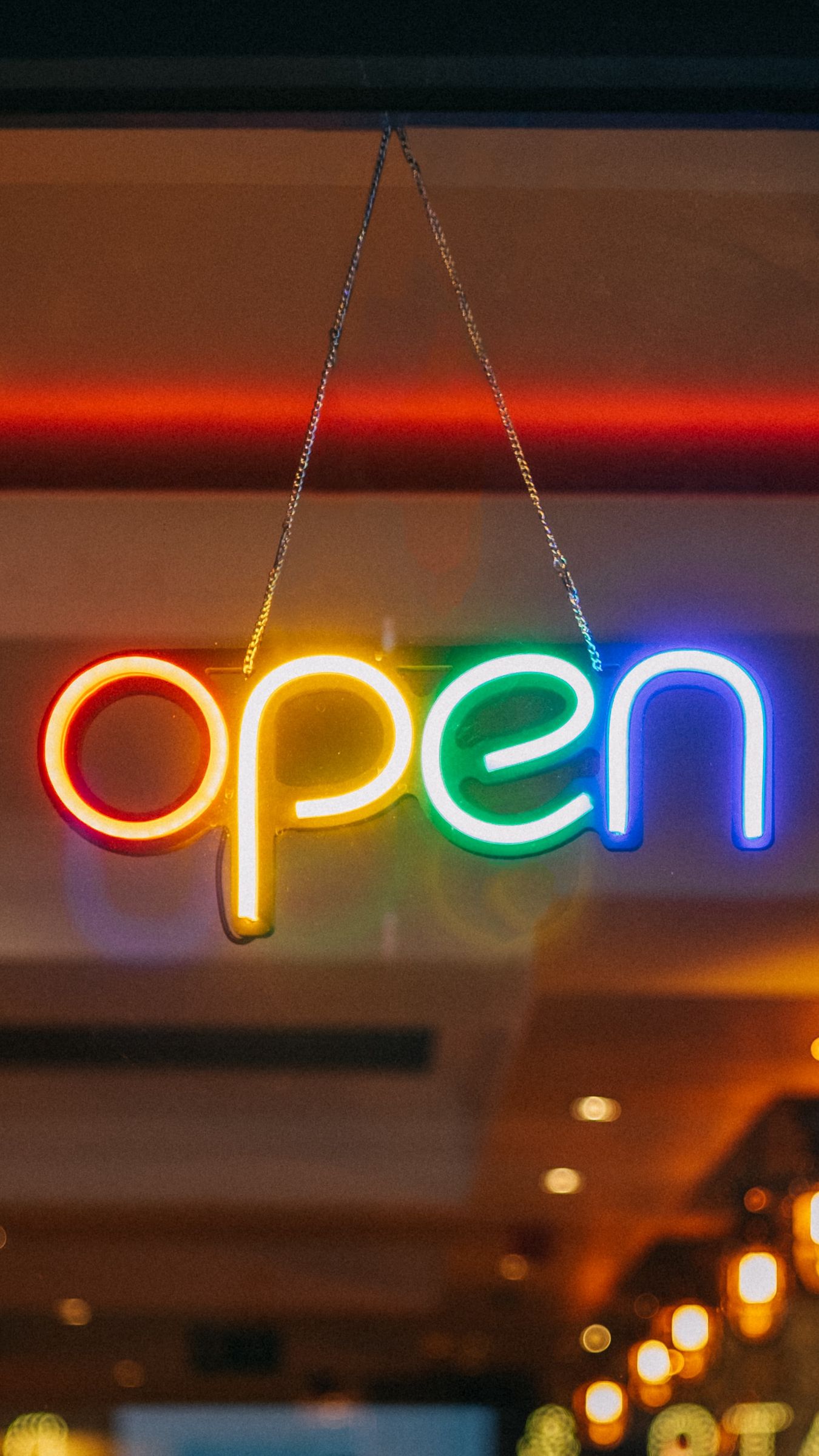 1350x2400 открыто, слово, неон, подсветка, разноцветный обои iphone 8+/7+/6s+/6+ for parallax