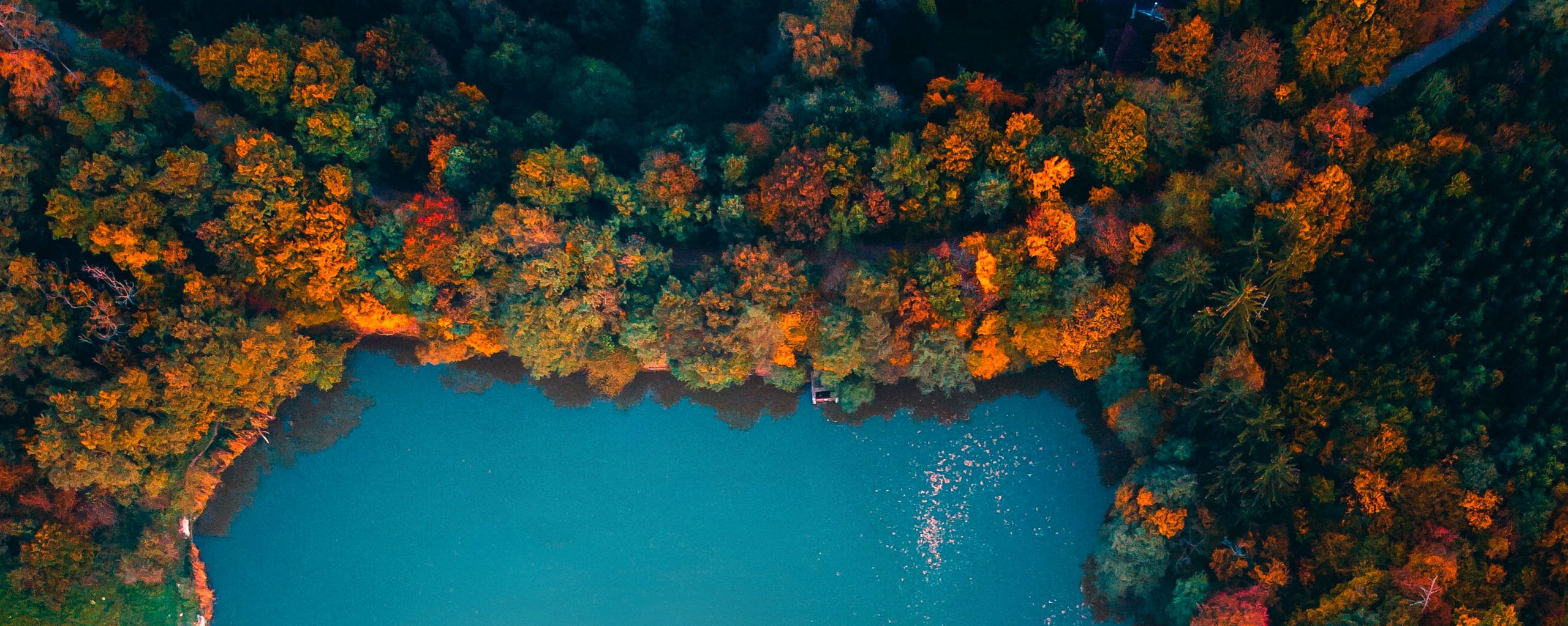 2560x1024 озеро, деревья, вид сверху, осень, венгрия обои ультраширокий монитор