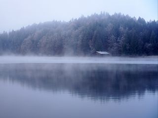 320x240 озеро, дом, лес, туман, вода обои nokia e72, e71, asha, alcatel onetouch