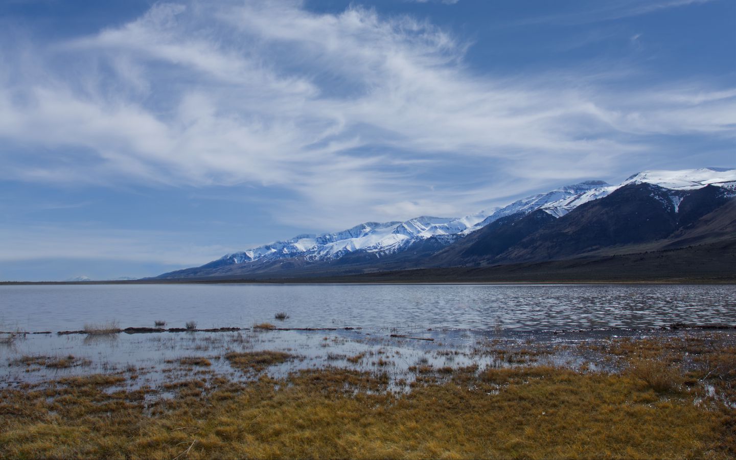 1440x900 озеро, вода, горы, облака, небо, пейзаж обои 16:10