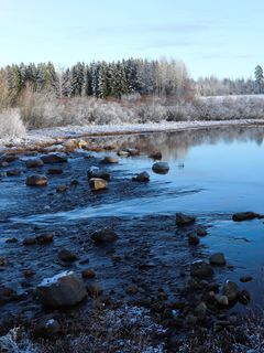 240x320 озеро, вода, камни, снег, деревья, зима, лес, природа обои мобильный телефон, смартфон