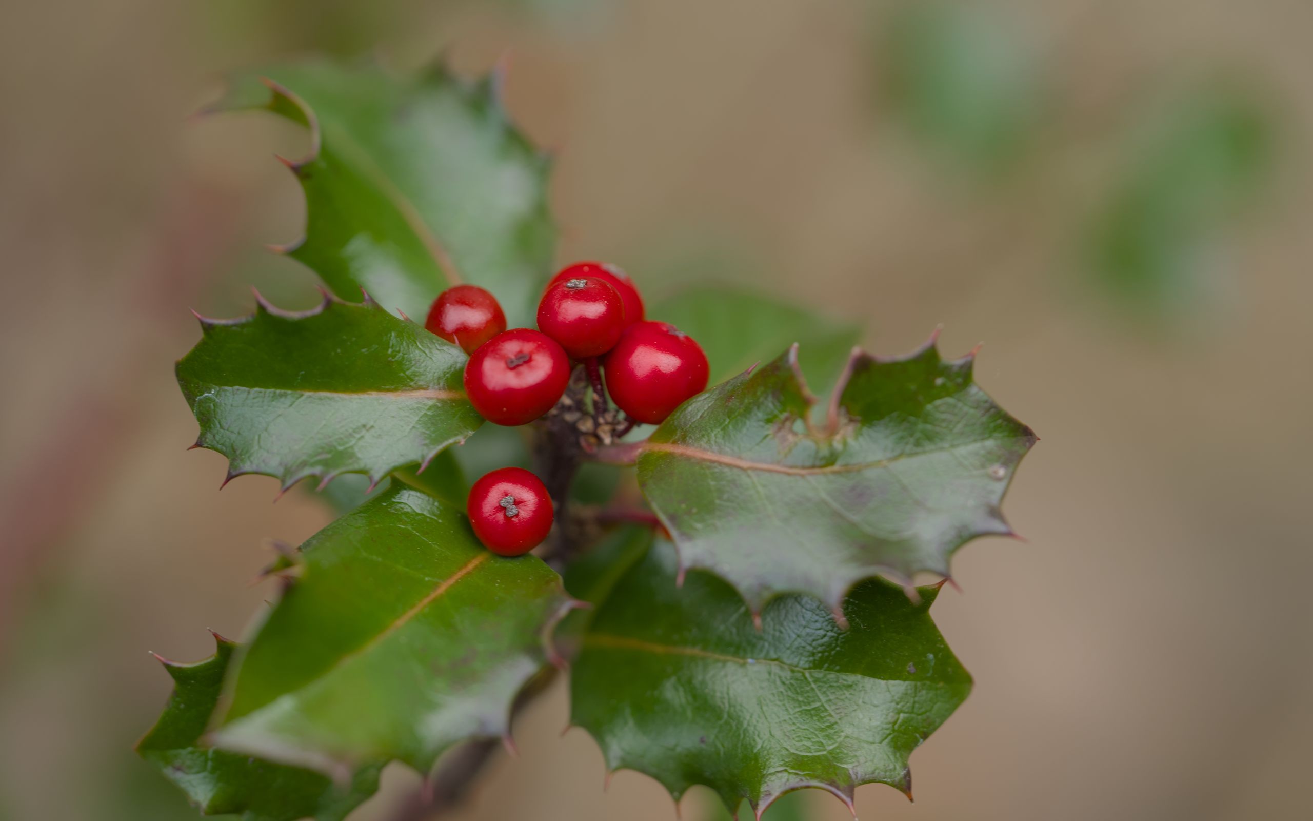 2560x1600 падуб, ягоды, листья, макро обои 16:10