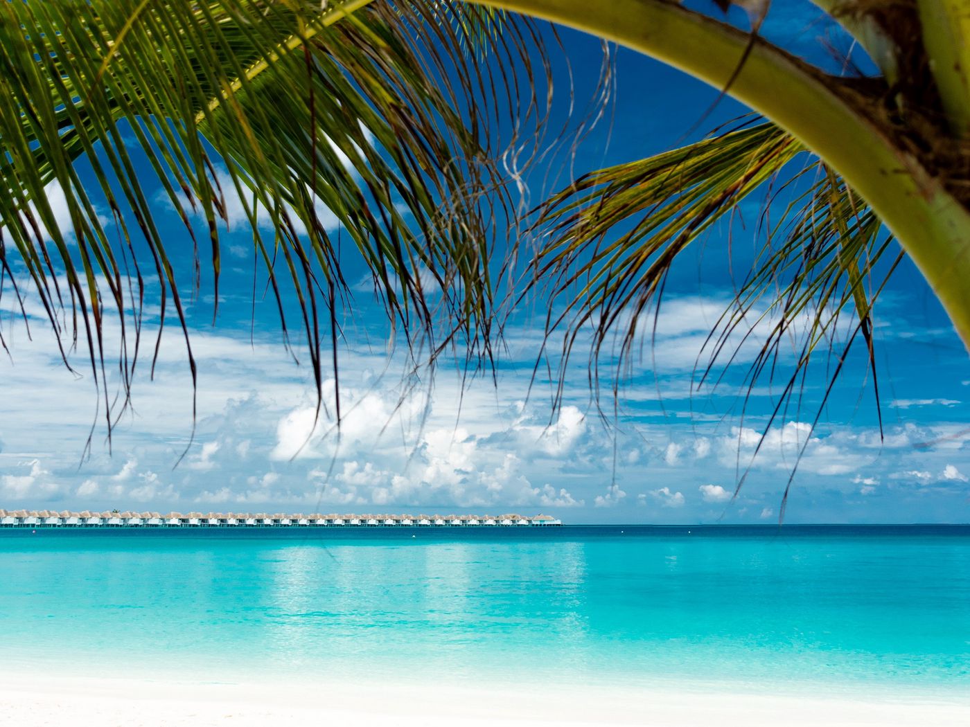 1400x1050 пальма, пляж, океан, тропики, побережье обои стандарт 4:3