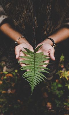 240x400 папоротник, лист, руки обои nokia asha 311, samsung galaxy 580, omnia, lg kp500