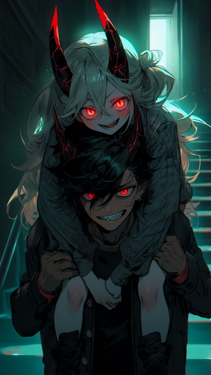 800x1420 пара, демоны, вампиры, рога, аниме, арт обои iphone se/5s/5c/5 for parallax