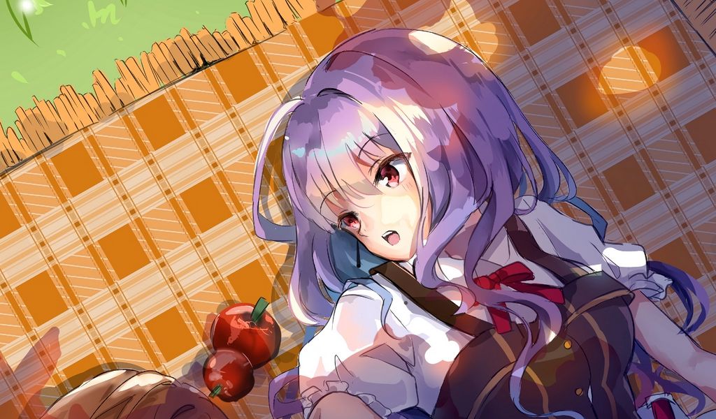 1024x600 пара, кот, пикник, плед, аниме обои нетбук, планшет