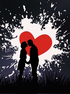 240x320 пара, поцелуй, любовь, сердце, силуэты обои мобильный телефон, смартфон